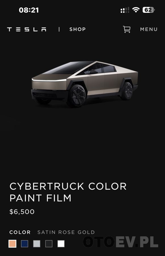 Ceny wahają się od 6000 do 6500 dolarów. Szare, czarne i białe folie Cybertruck kosztują 6000 dolarów, natomiast kolorowa folia Satin Rose Gold i Satin Abyss Blue kosztuje 6500 dolarów.