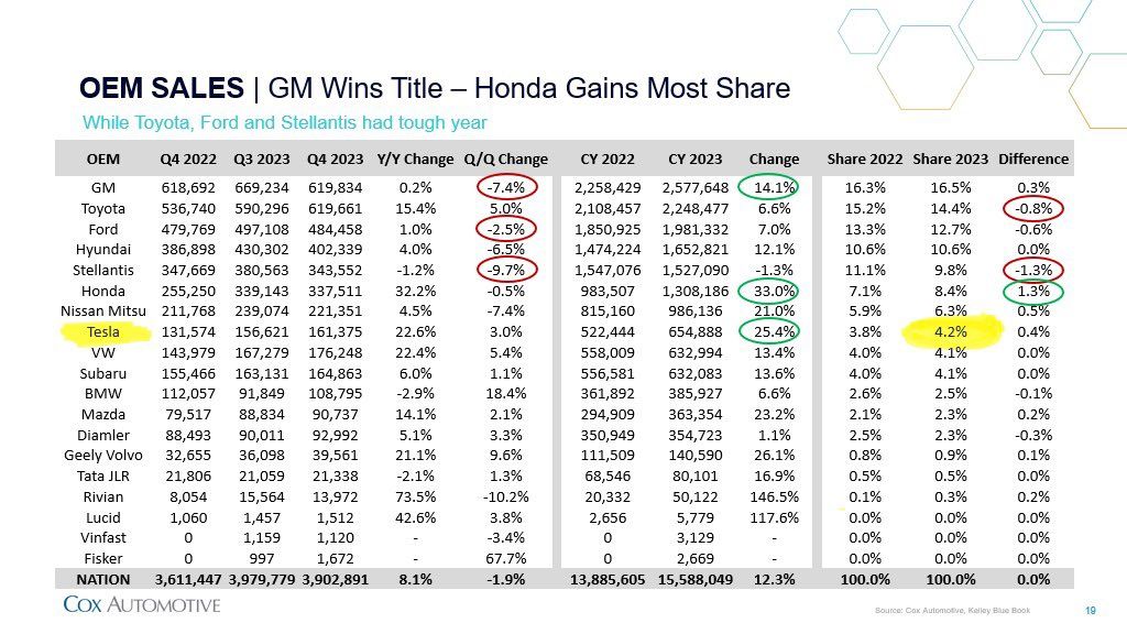 Na pierwszy rzut oka nie wydaje się, aby 4.2% udziału na rynku samochodowym to dużo, ale przełóżmy procenty na liczby: 25% wzrost sprzedaży to ponad 650 000 pojazdów. Dokładając do tego fakt, że rynek samochodowy jest mały i na dwucyfrowy wynik udziałów w rynku mogą pozwolić sobie nieliczni, można dojść do wniosku, że Tesla odniosła sukces.