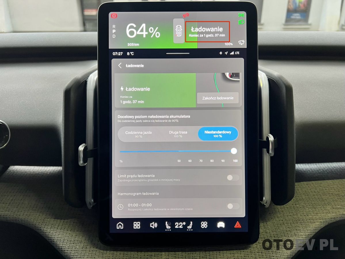 Zdecydowanie soft powinien ulec poprawie i informować użytkownika z jaką mocą w danym momencie ładuje się auto. Wiemy wtedy lub możemy się domyślać, czy moc jest wystarczająca i będziemy się dalej ładować czy szkoda po prostu na to czasu bo, np. nasza bateria jest mocno wyziębiona a wtedy moc ładowania jest bardzo niska, co powoduje bardzo długi i powolny proces naładowania baterii.