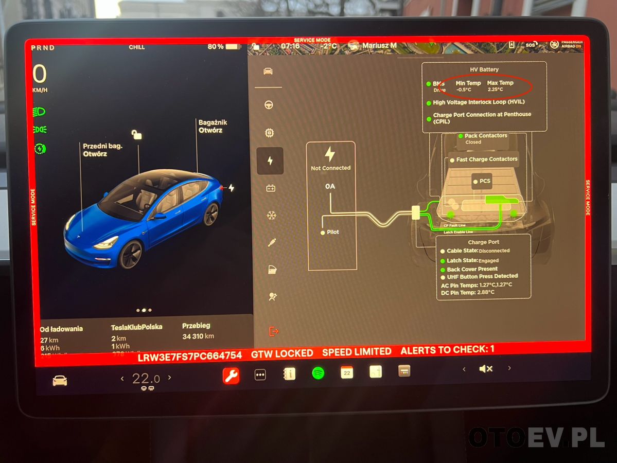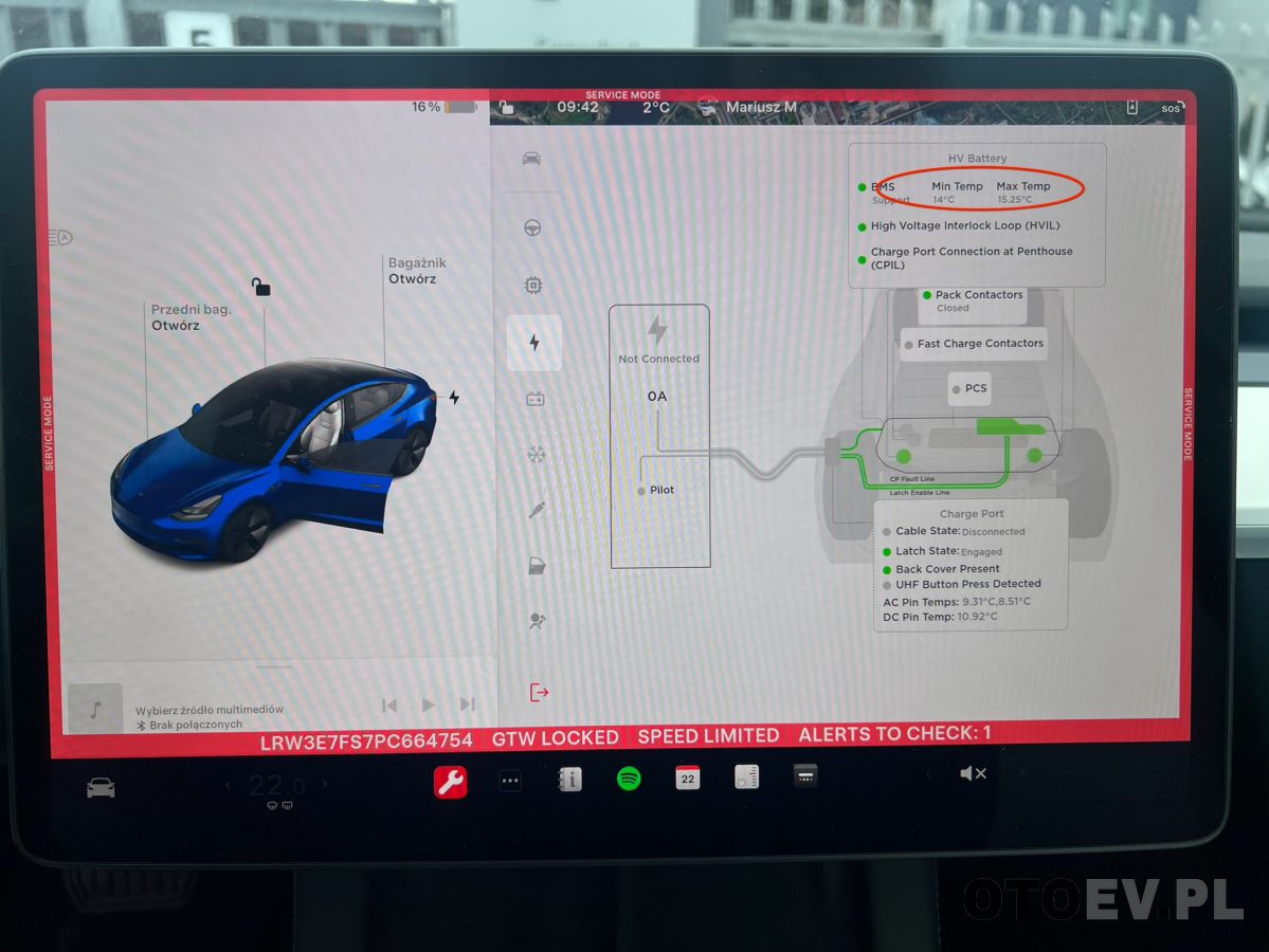 Kiedy wyjeżdżałem auto raportowało temperaturę baterii od -0,5 do + 2,25 stopnia Celsjusza.